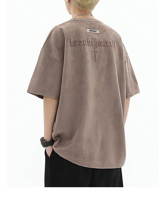 Cross Embroidered Sueded T-Shirt