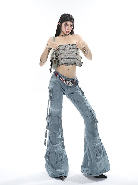 Sold outStrappy Cargo Lowrise Flared Jeans