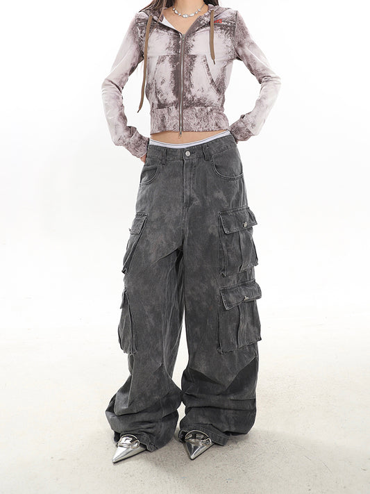 Vintage Wash Cargo Utility Denim Pants