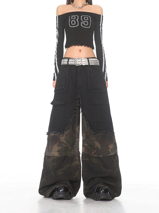 Deconstructed Denim Cargo Utility Pants