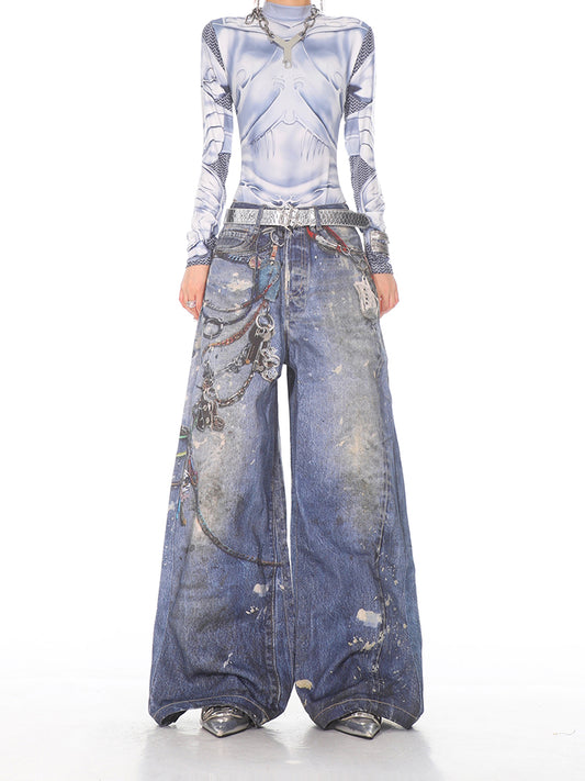 Sold outPainted Chain Detail Wide Leg Jeans
