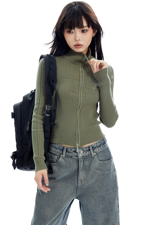 Sold outDouble Zip Ribbed Knit Long Sleeve