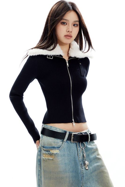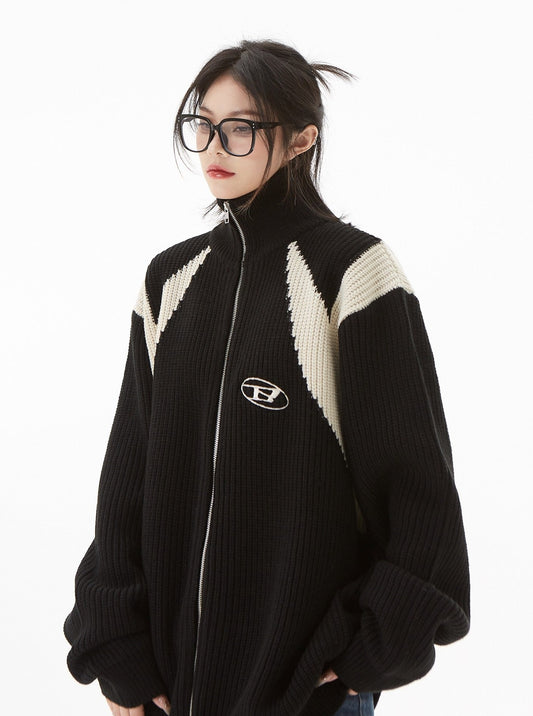 Sold outContrast Knit Zip Sweater Cardigan