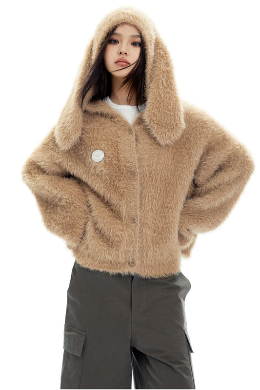 Sold outBunny Ears Hooded Plush Sweater