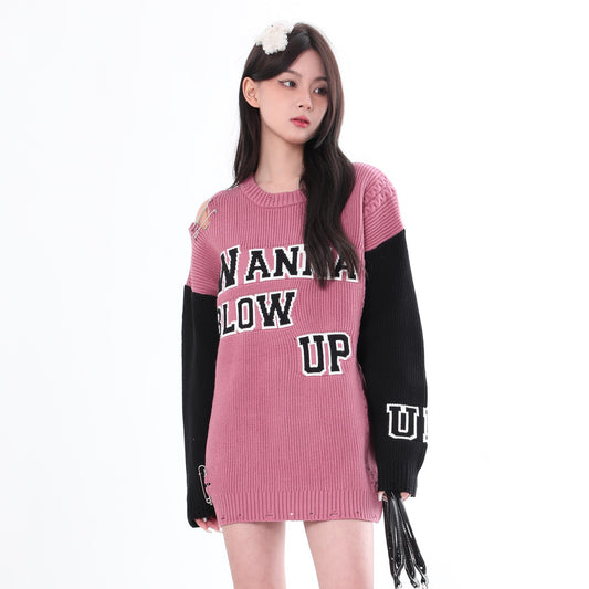 Destroyed Knit Shoulder Cutout Sweater
