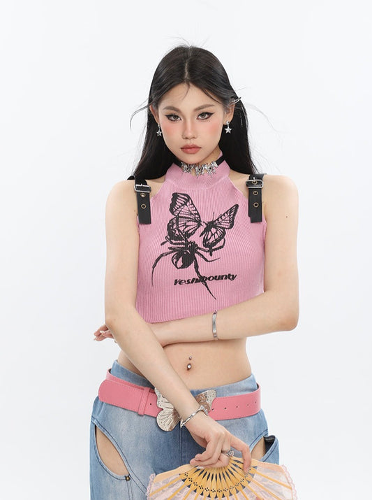 Sold outButterfly Buckle Strap Halter Top