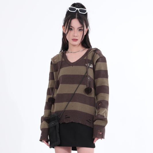 Sold outDestroyed Striped Knit Hoodie