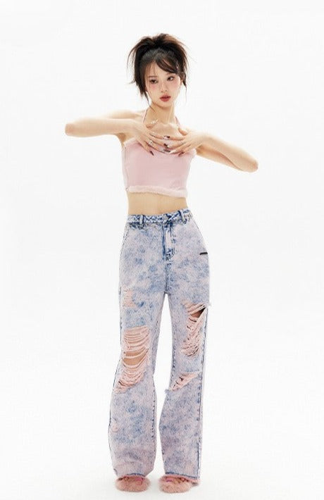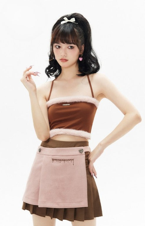 Fur Trim Halter Top