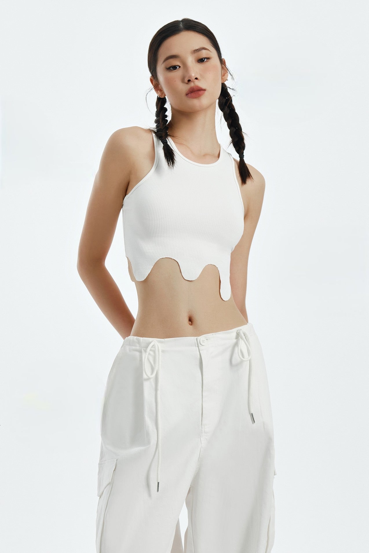 Drip Crop Top adds a flirty style to any look. Crafted from ribbed fabric, it features a racerback style for a comfortable fit. Perfect for a night on the town or a laid-back day look.
