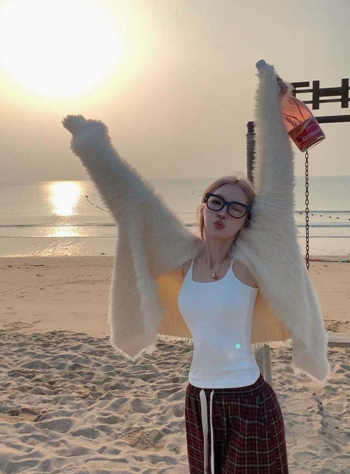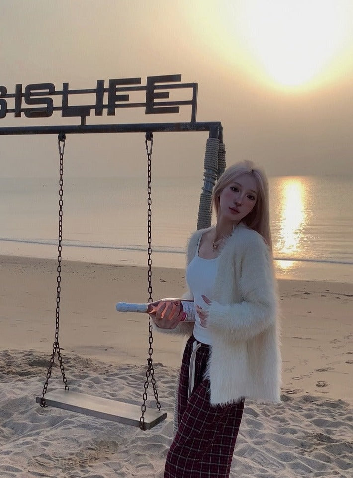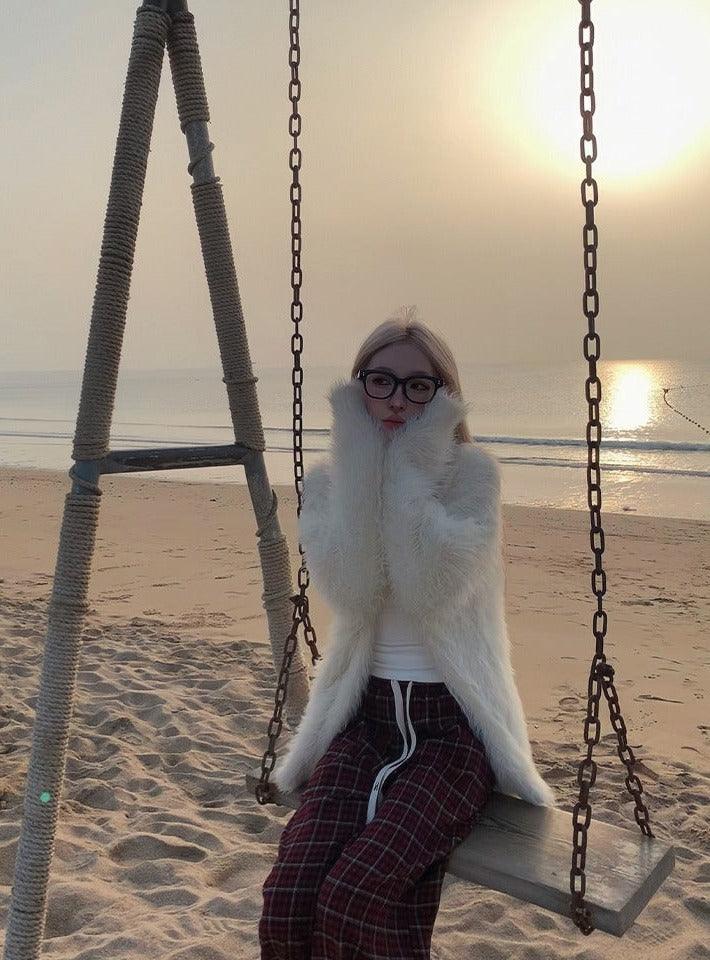 Plaid relaxed-fit pants with a wide-leg fit. Features a classic tartan pattern and elastic drawstring waist. Great for casual wear. Pair with a sweater or tee for a cozy look!