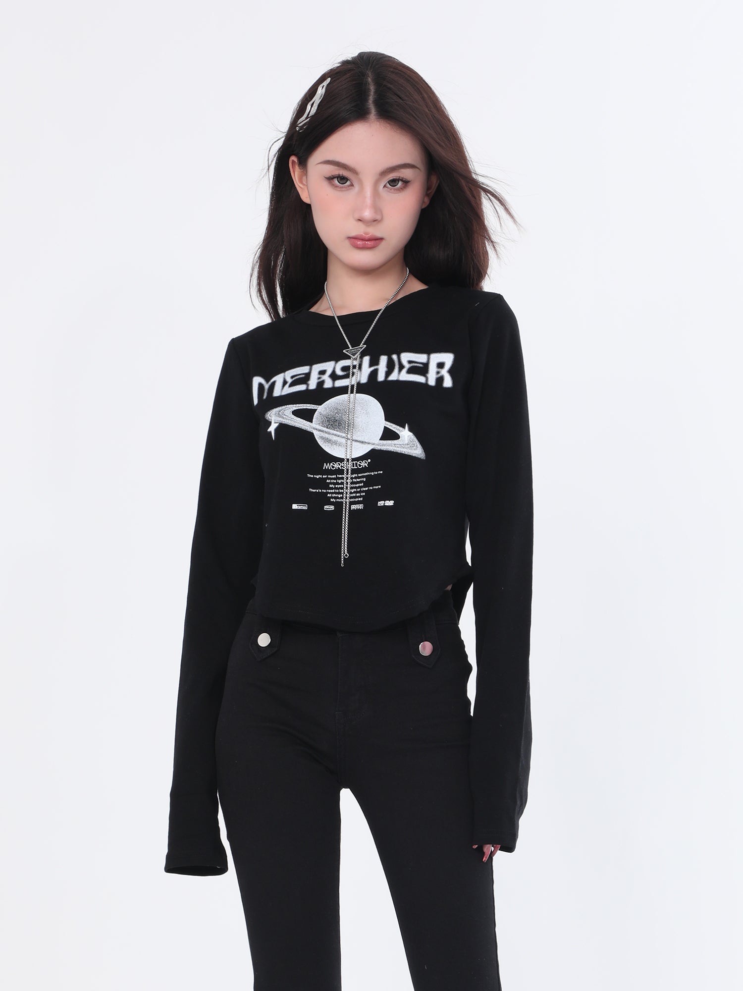 Stay comfortable and stylish in our Saturn Graphic Long Sleeve Top. Its soft breathable fabric and simple long sleeve design are perfect for everyday wear.