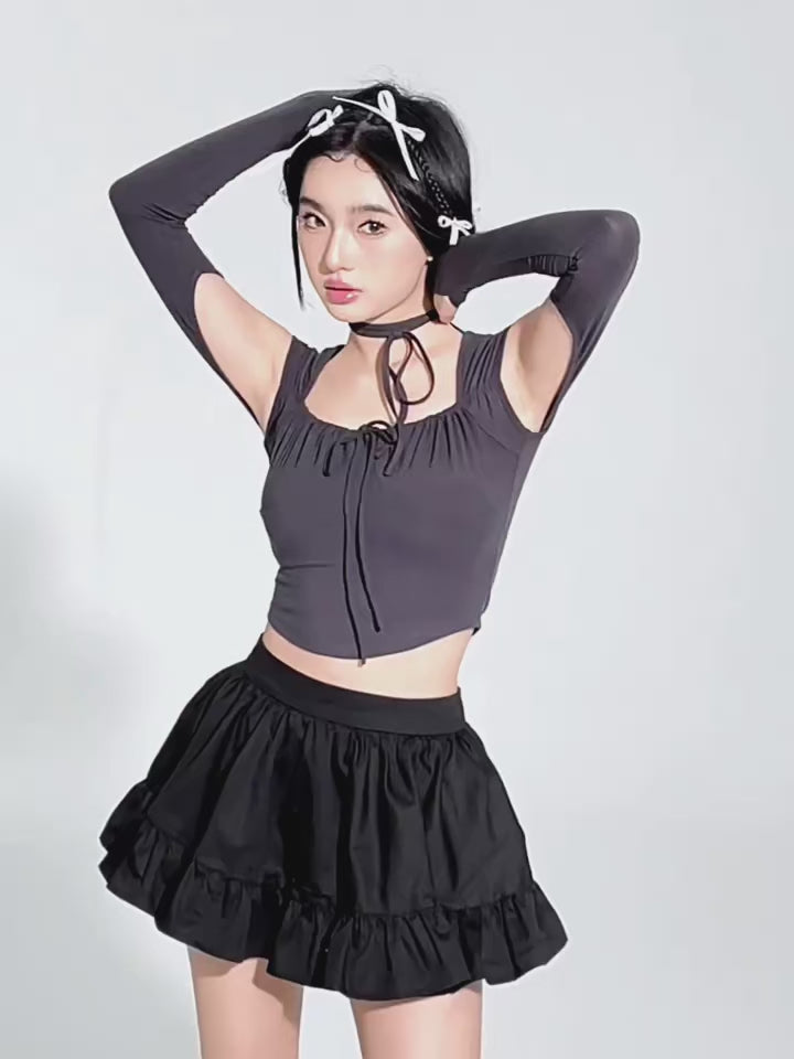 This darling Square Neck Ballet Tee with Sleeves will set hearts aflutter! Its balletcore capped sleeve square neckline is oh-so-cute, and the detachable sleeves with handy thumb holes make it as practical as it is sexy.